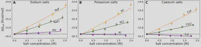 - Free-energy calculations reveal ions can be highly different in their perturbation mechanism.